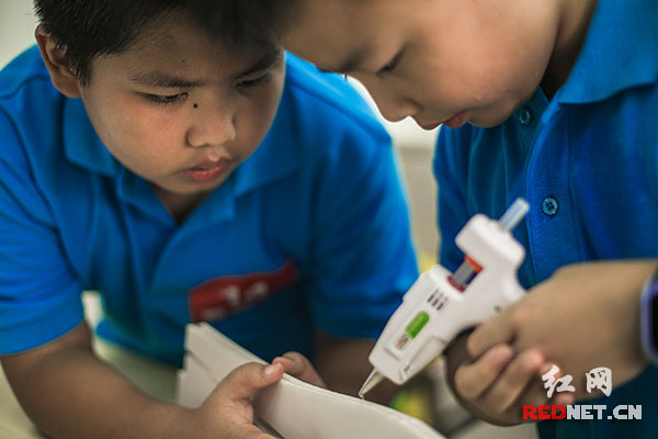 学生们动手拼装打印出来的“飞机”零部件。