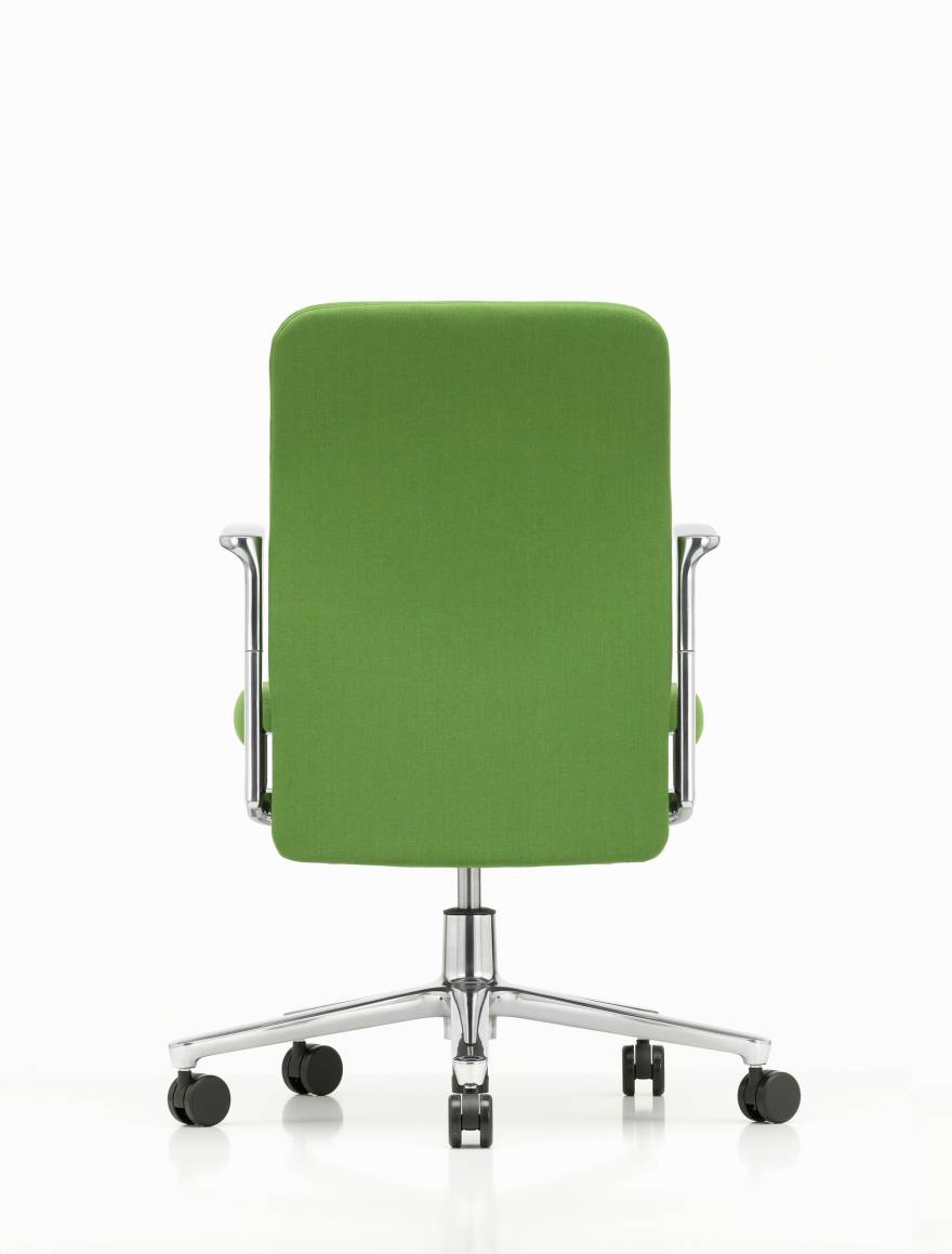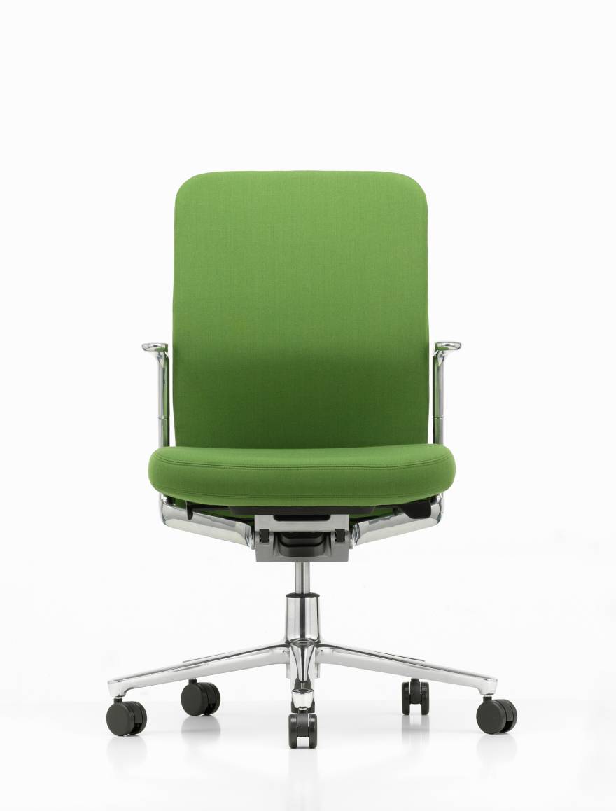 符合人体工学的办公椅,线条简单,颜色大胆。