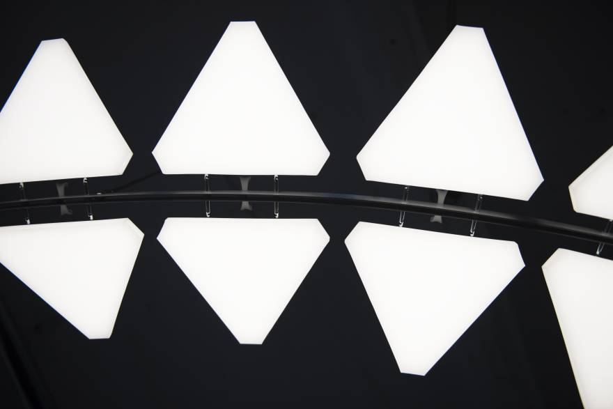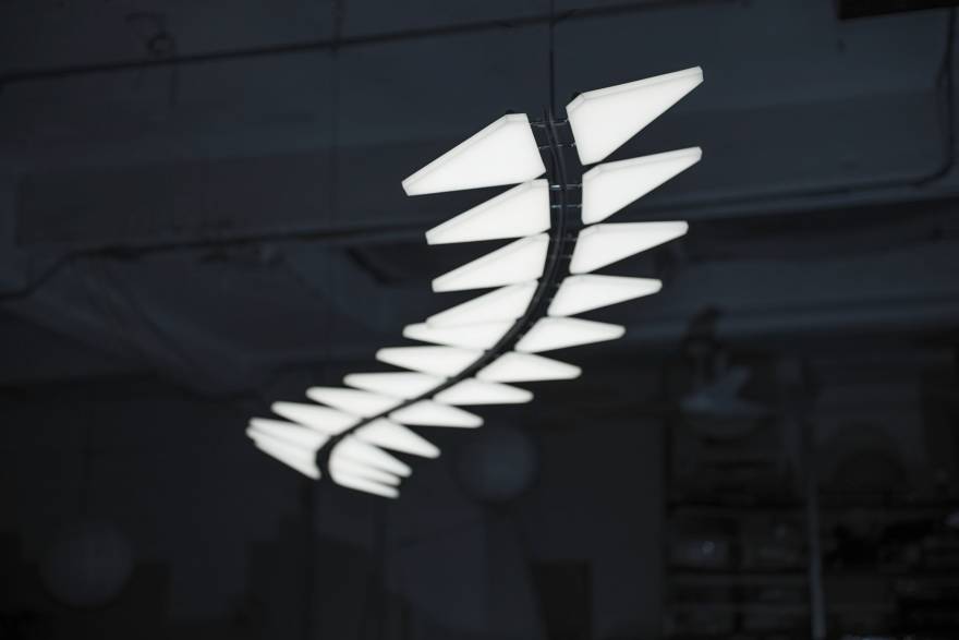 Lift是一种交互式照明,能感知和响应环境中的人类活动。它由24个几何发光的花瓣连接在一根脊柱上,每一片花瓣都能向上或向下移动。而当人走在下面时,它会发出微妙的飘动。
