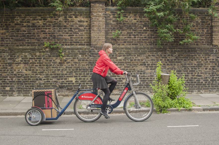 自行车一直较为常见的通勤工具,但对于托运笨重的大件货物,如购物或行李运输,则极不便捷。而伦敦城市拖车正好解决了这一点,它可以存放在任何自行车停车处,并能在租用自行车时使用。