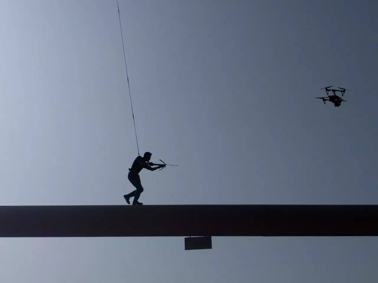 电影中有一场观众印象深刻的戏:在雇佣军侵入的工厂里,吴京拿着弩在管道上准备射击。拍摄中,镜头从脚步拉远呈现出吴京快步疾走的画面,飞机的速度要比演员奔跑的速度快,而演员的前方是一堵墙,无人机在保证飞行速度完成画面拍摄后又要稳定地悬停在墙壁前不撞上去,这对于飞手和无人机的要求都很高。