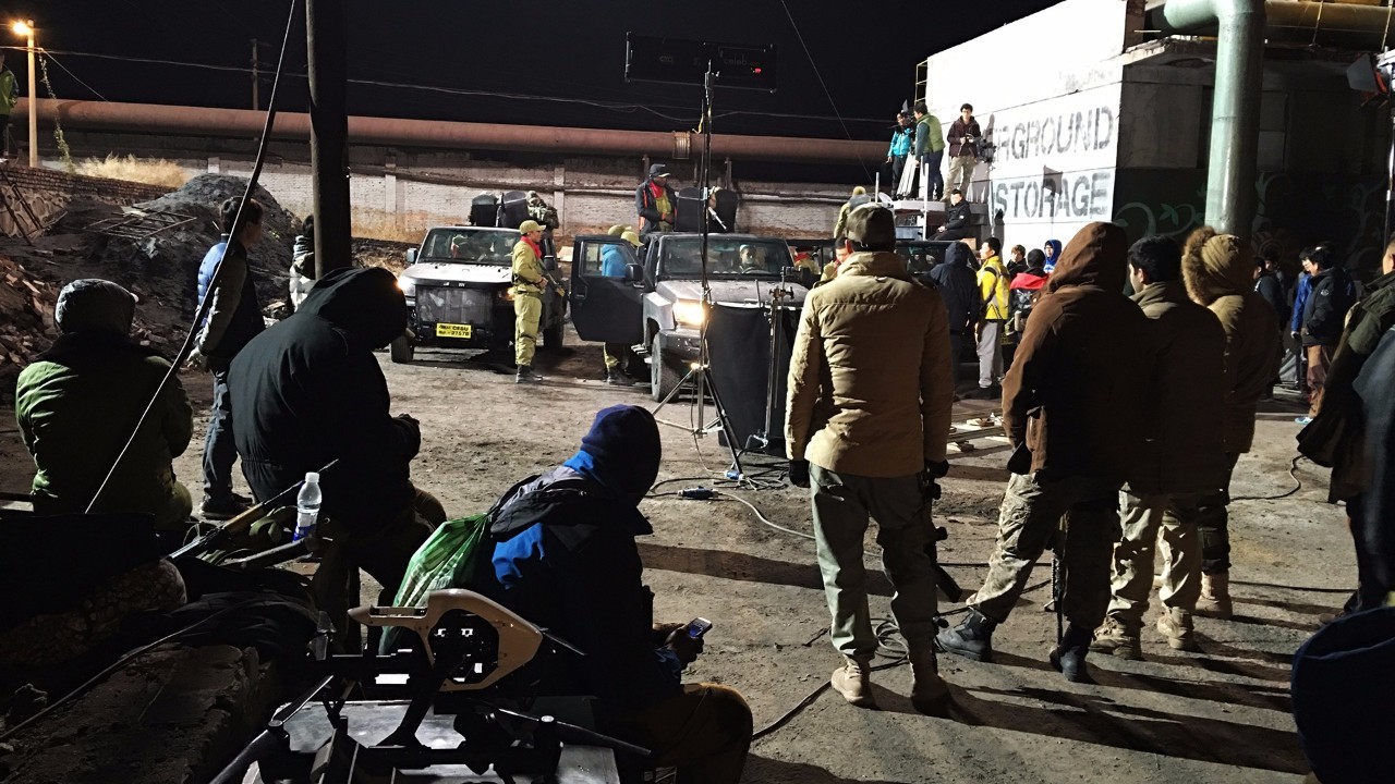 从40度到零下9度,从大风的海上到炙烤的沙漠,期间还有很多废旧工厂夜戏和爆破戏份,天气的恶劣和环境的干扰对于飞手和机器的考验都很大。炎热的沙漠里,他们在贫民窟使用风扇给机器和电池降温;天气寒冷,他们将车内暖气开足给电池保温,为了确保拍摄顺利,刘建锋的团队没少想招儿。“‘悟’1 RAW的表现很好,这么恶劣的拍摄环境也保证了拍摄质量”。