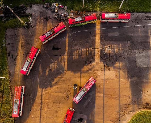 来自立陶宛的摄影师Martynas Charevičius来到维尔纽斯市最大的公交车站,借用无人机从下午到傍晚的时光,拍摄了光影之下的公交车。除此之外,他还借助熟练的无人机操作和大胆的慢门曝光创意,将庞大枯燥的公交车拍的极富动感。
