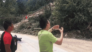 “滑坡开始了!”刘华大喊一声,招呼我们赶紧跑离险境,记者感到整个心脏都在“咚咚咚”地跳,身手似乎瞬间变得异常敏捷,拎起书包,撒腿就跑,另一个同事还不忘用手机记录下了这一惊险的时刻。