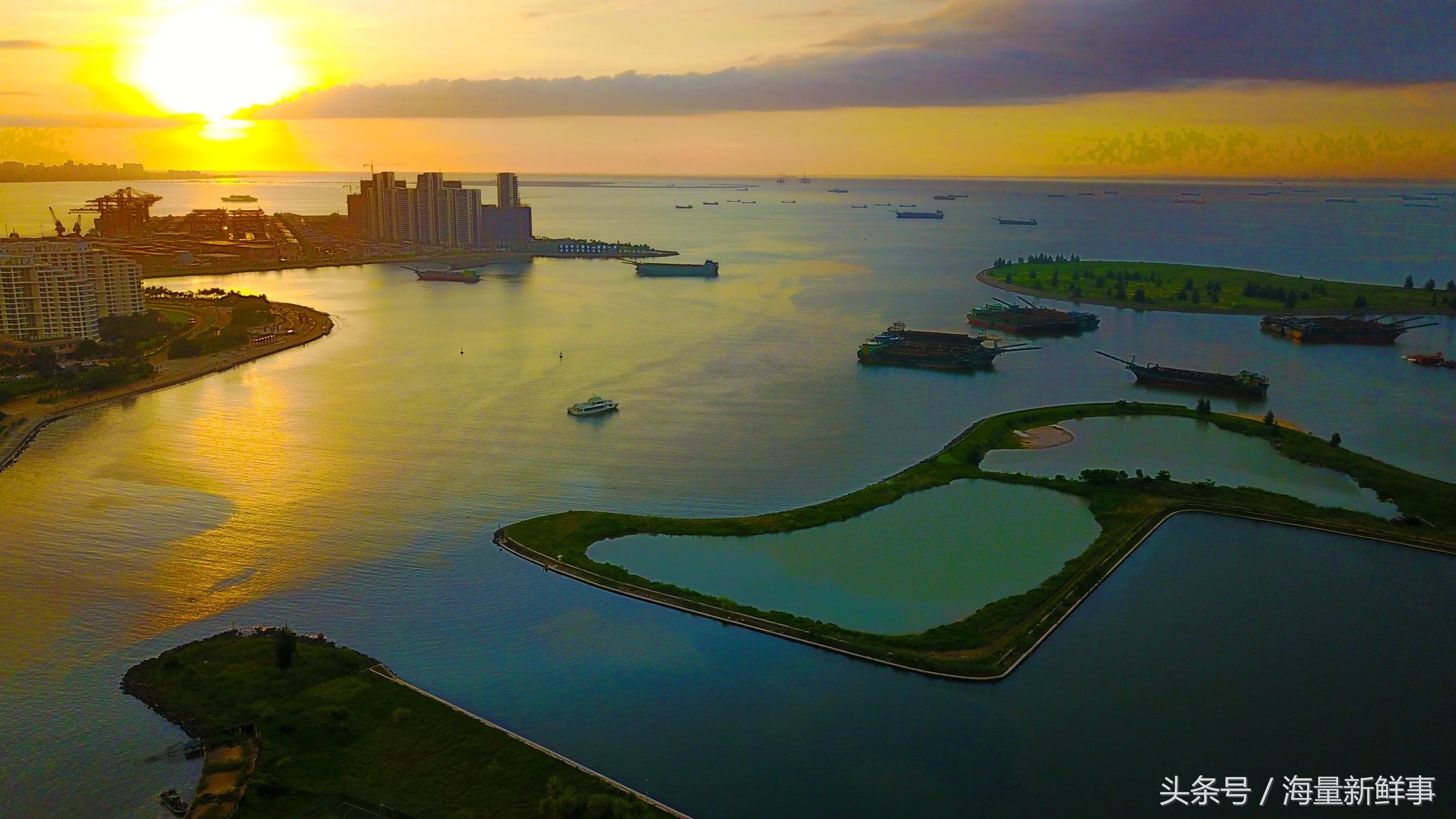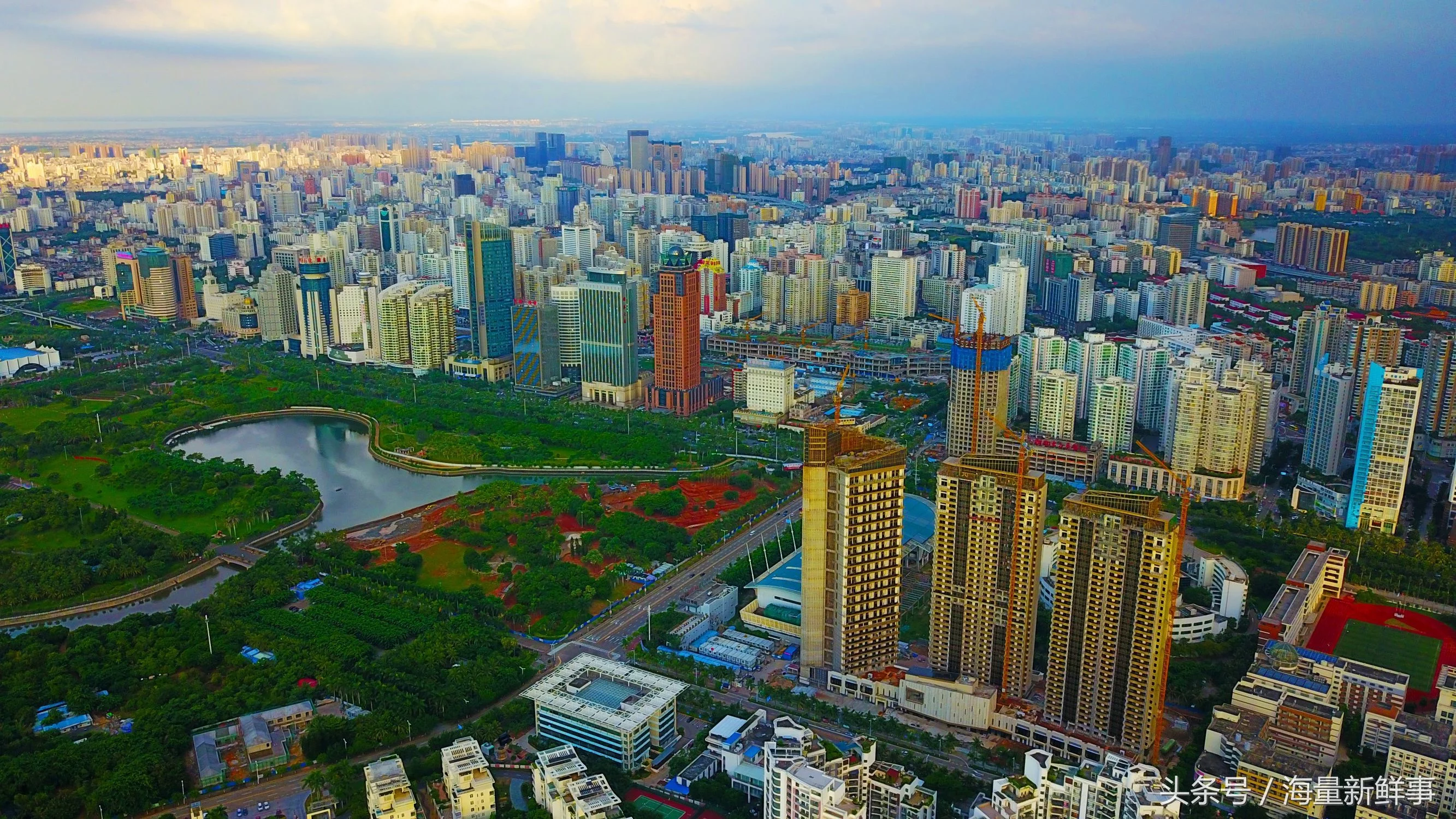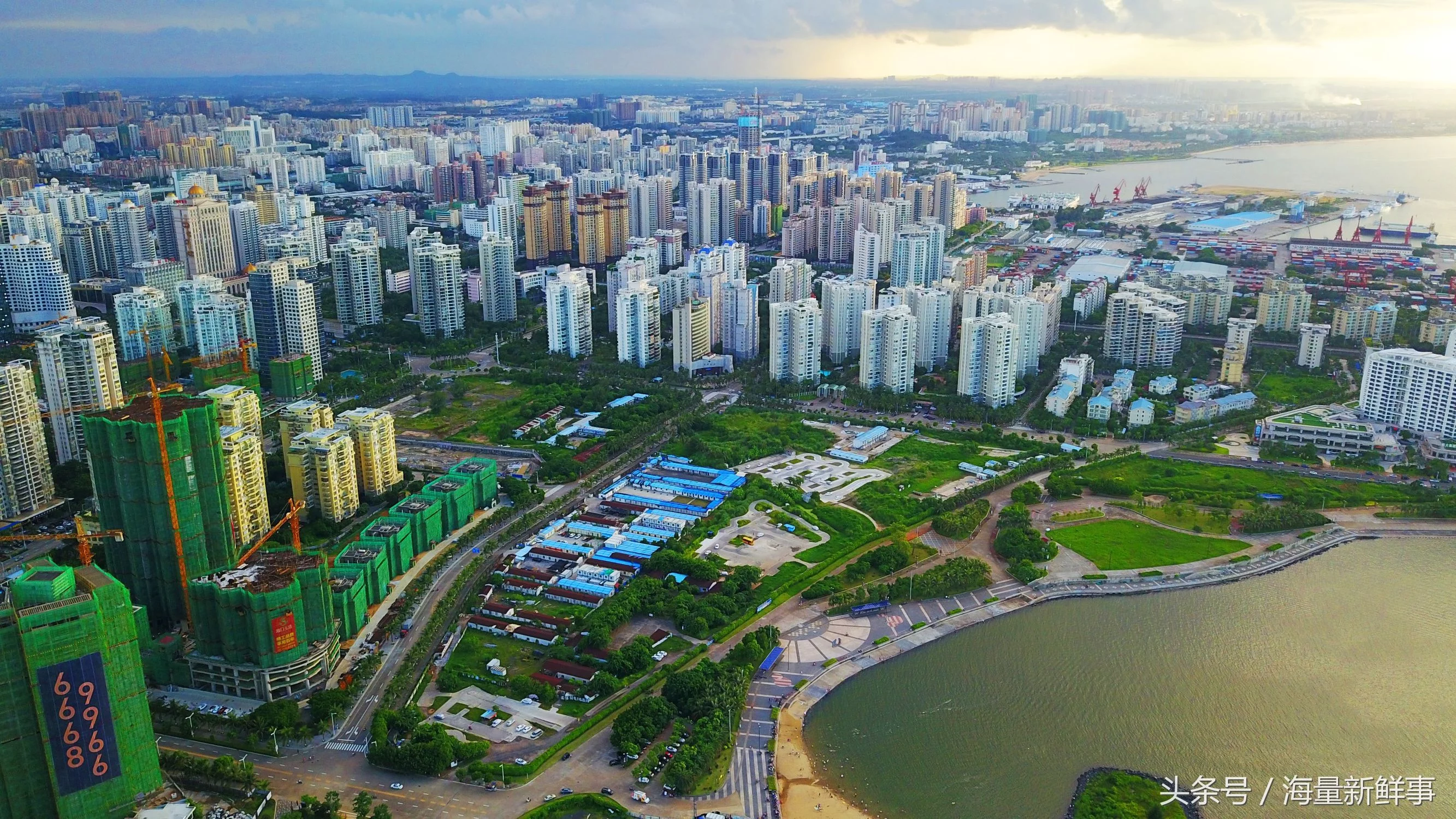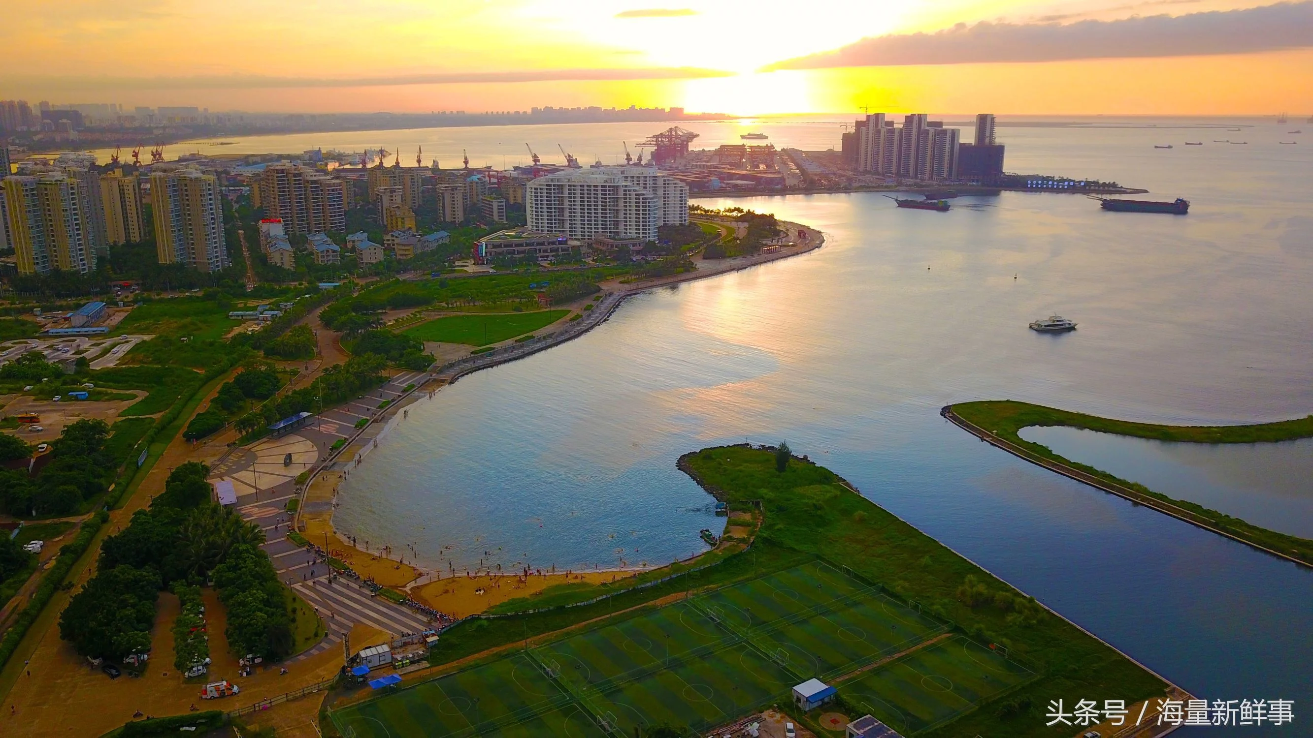 落日余辉下,无人机百米高空视角下的椰城海南省海口市,霞光满天。鳞次栉比的楼宇与满目葱翠的绿色相衬映,尽显生态宜居的现代都市繁华。让我这个来自江苏的游客震撼不已,第一次来椰城海口,没想到海口竟然如此美丽,令人陶醉神往。