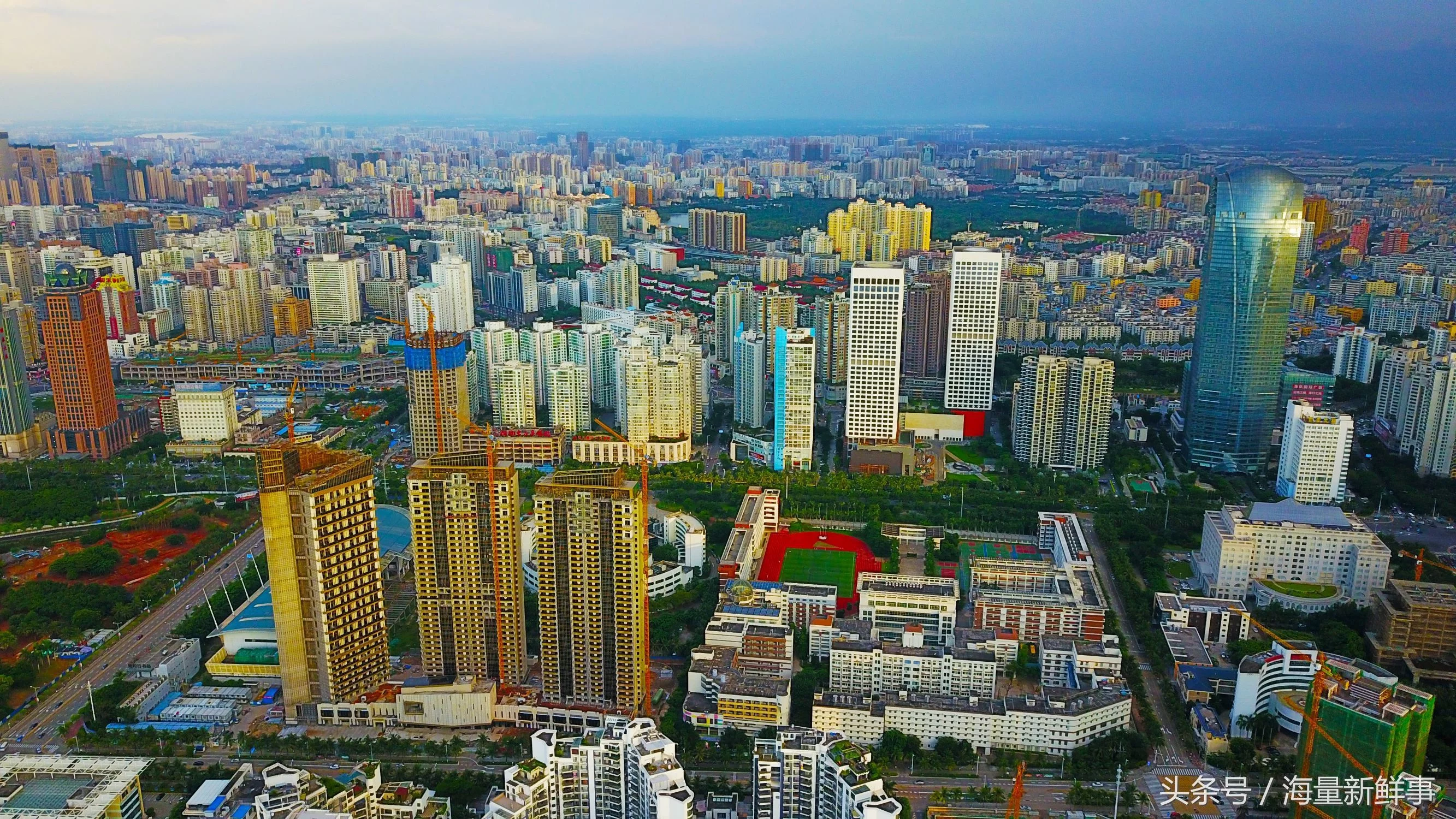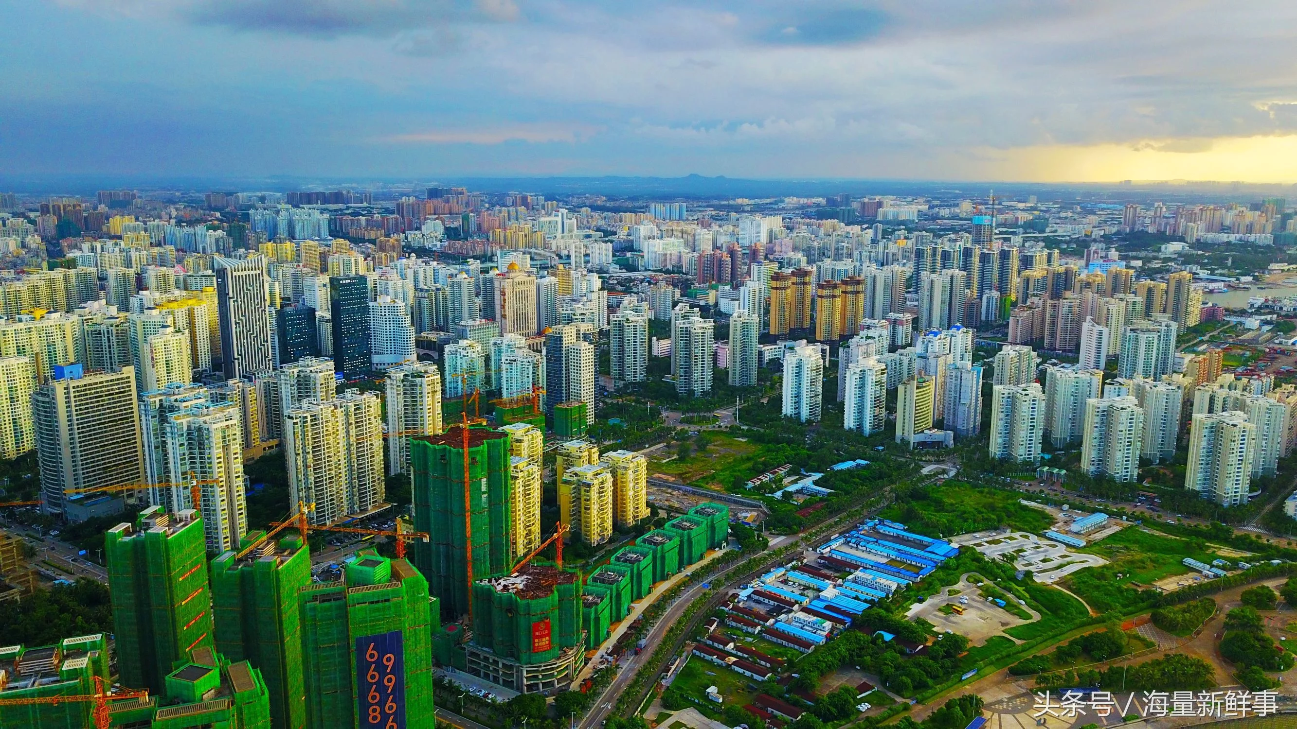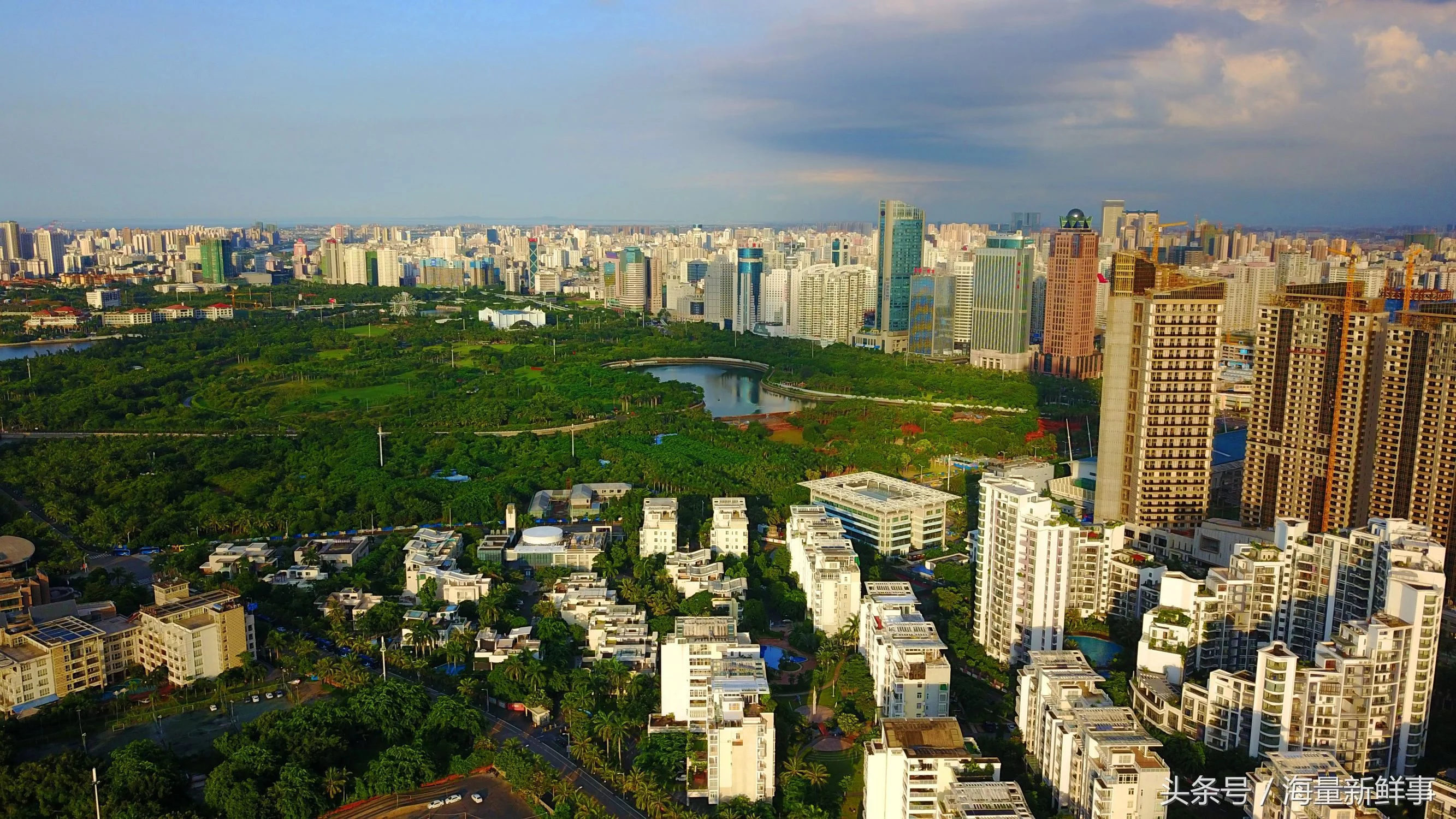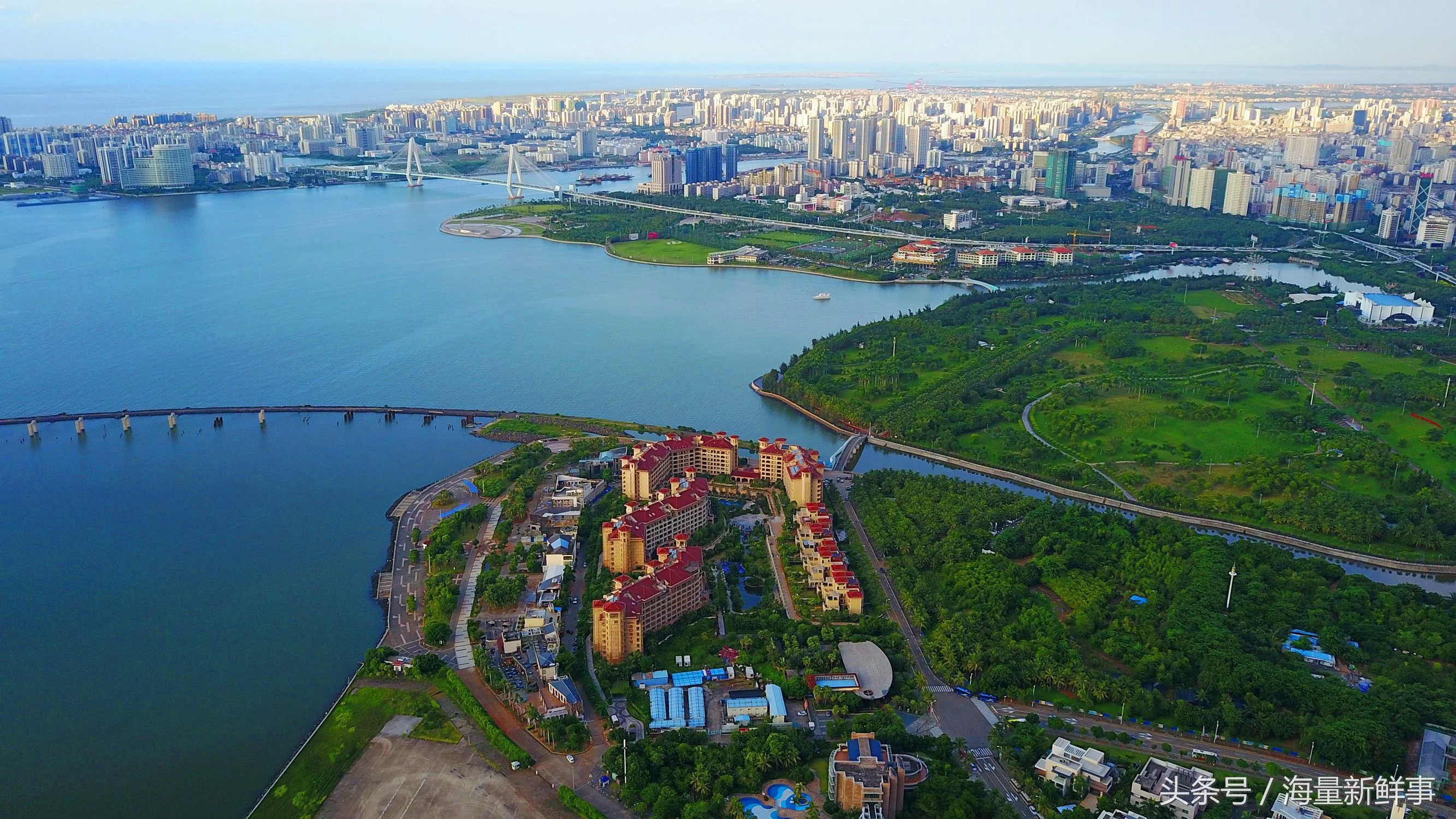 落日余辉下,无人机百米高空视角下的椰城海南省海口市,霞光满天。鳞次栉比的楼宇与满目葱翠的绿色相衬映,尽显生态宜居的现代都市繁华。让我这个来自江苏的游客震撼不已,第一次来椰城海口,没想到海口竟然如此美丽,令人陶醉神往。