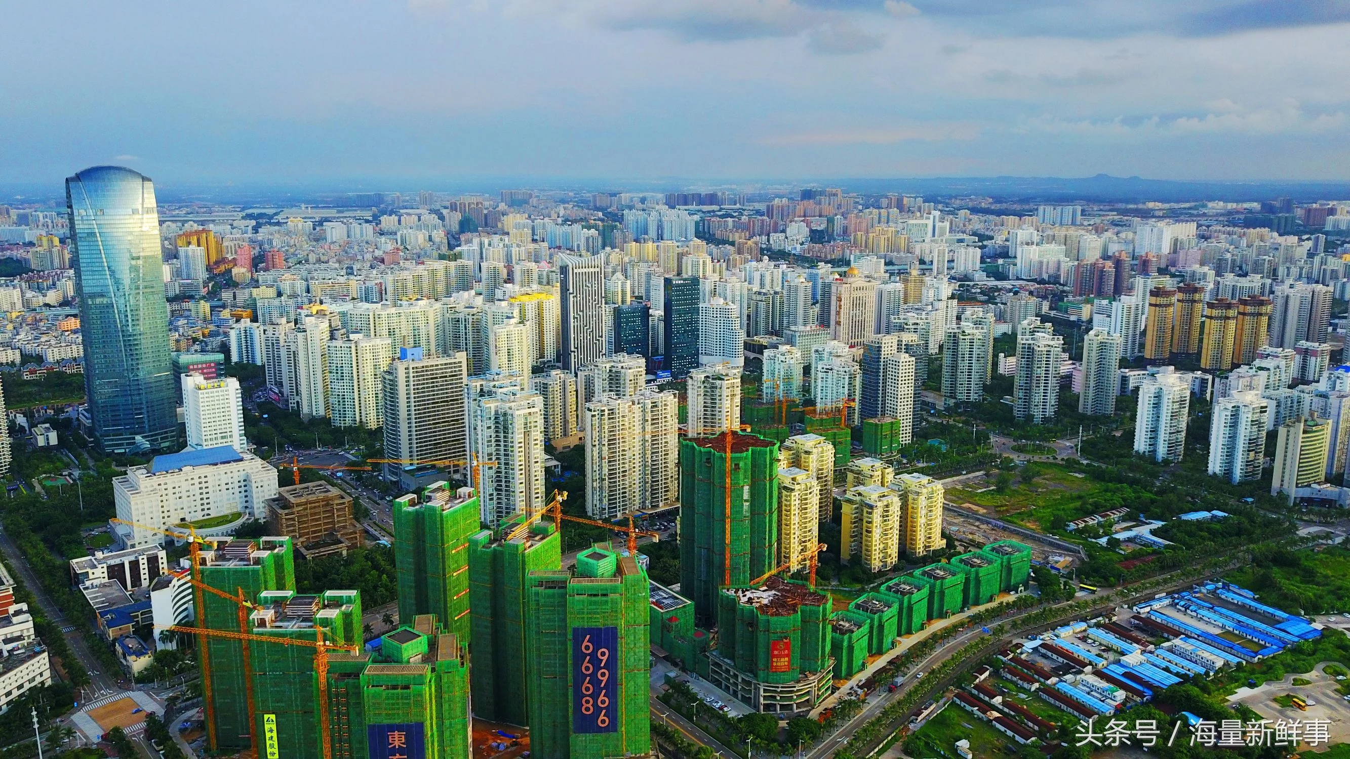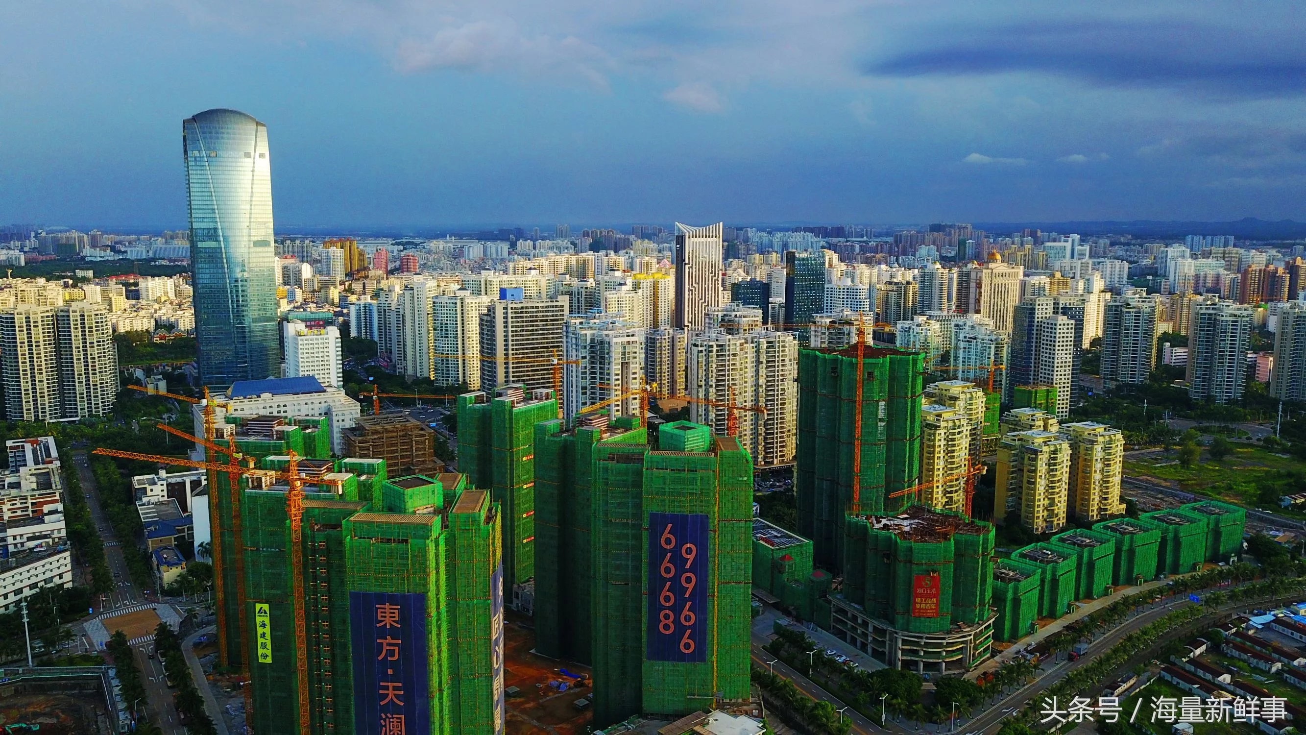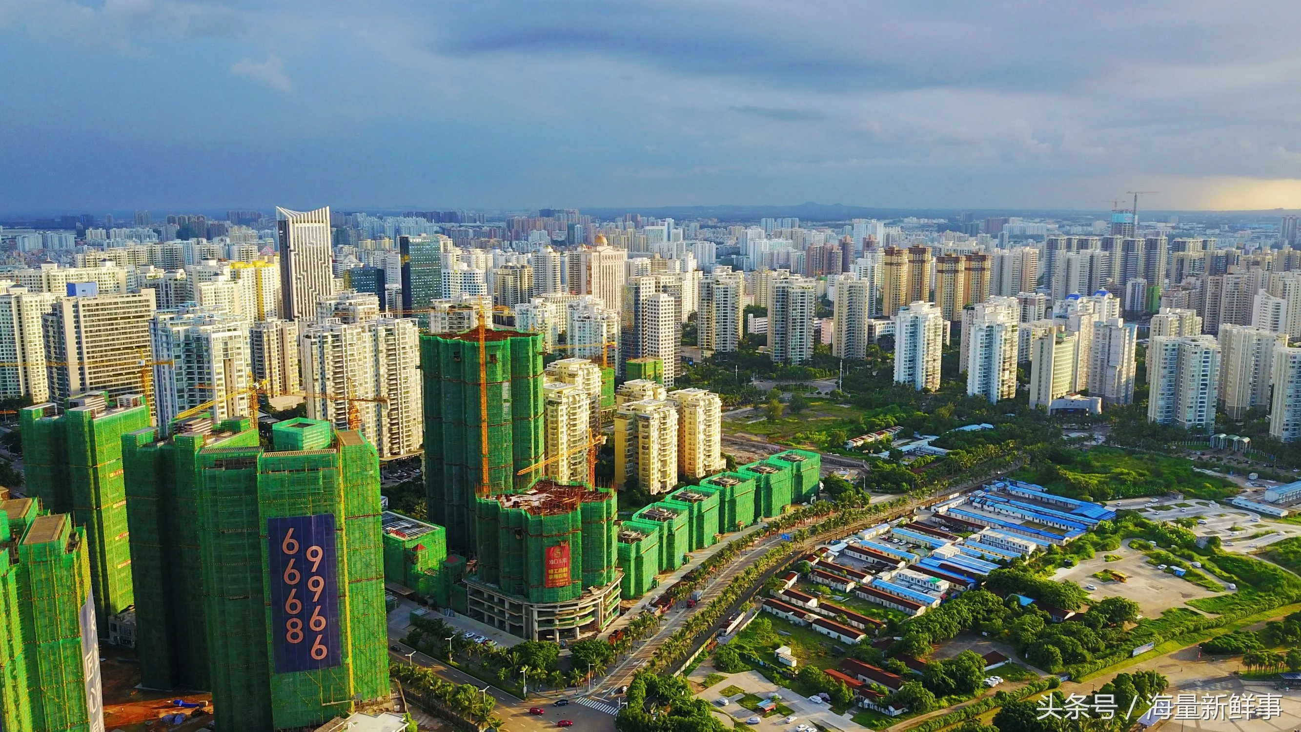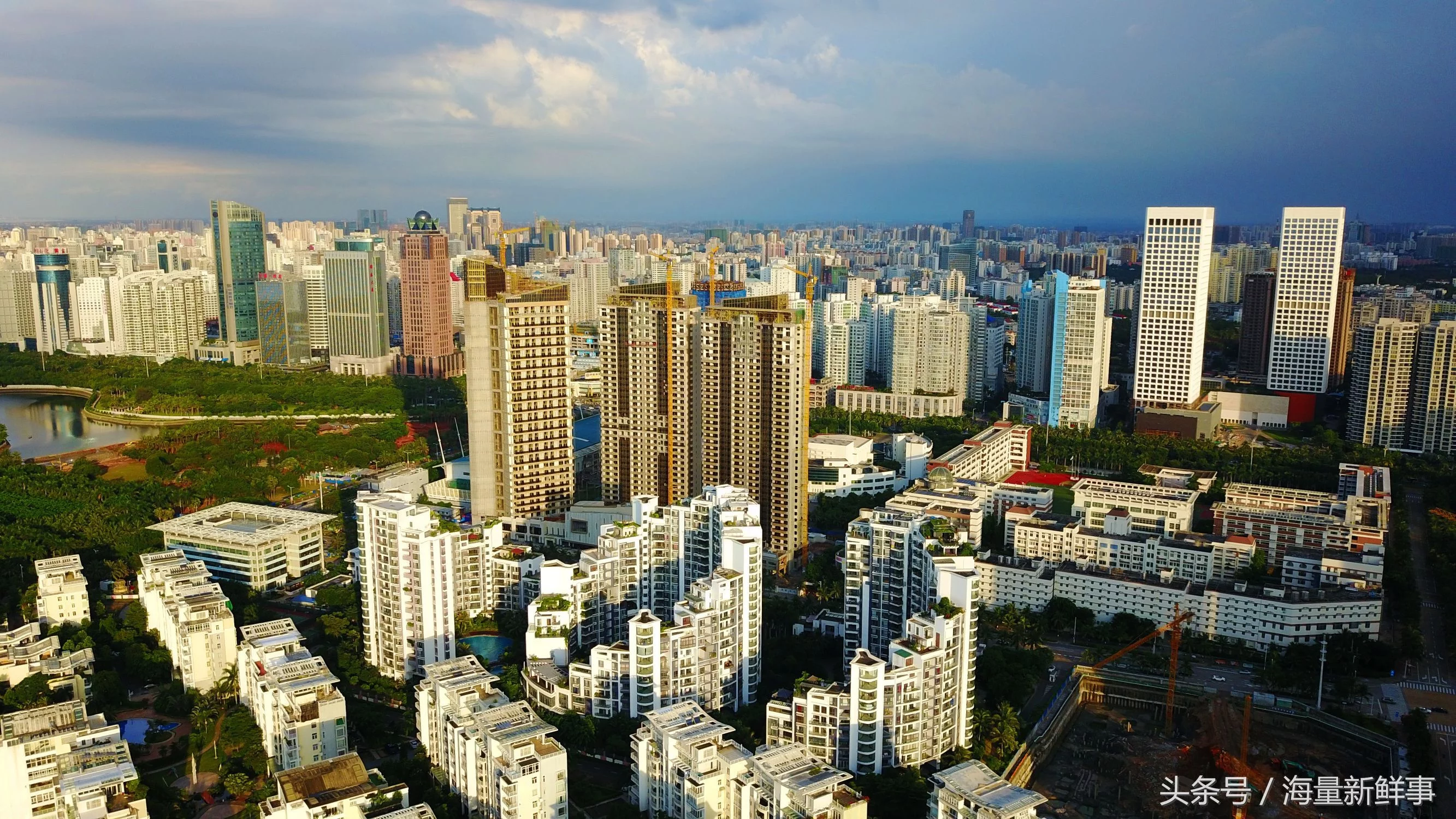 落日余辉下,无人机百米高空视角下的椰城海南省海口市,霞光满天。鳞次栉比的楼宇与满目葱翠的绿色相衬映,尽显生态宜居的现代都市繁华。让我这个来自江苏的游客震撼不已,第一次来椰城海口,没想到海口竟然如此美丽,令人陶醉神往。