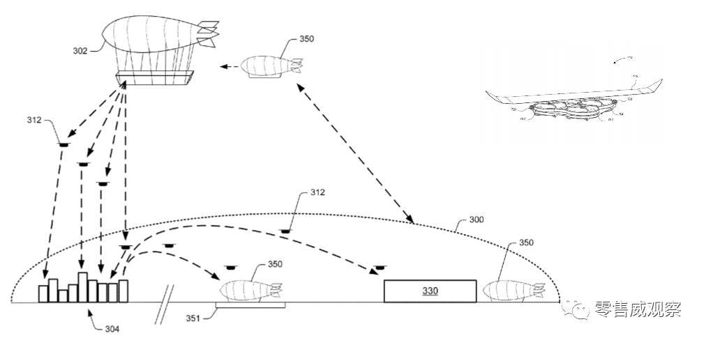 如果从物流中心开始的话,是不经济的,这意味着亚马逊需要建立一个“配送点”,于是就出现了“天空母舰”。