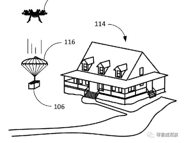 于是,在5月底,亚马逊爆出的一项无人机专利显示,亚马逊的无人机会在一定高度“放下”商品,然后商品在自由落体的过程中会打开一个小型降落伞,最终到达指定位置。