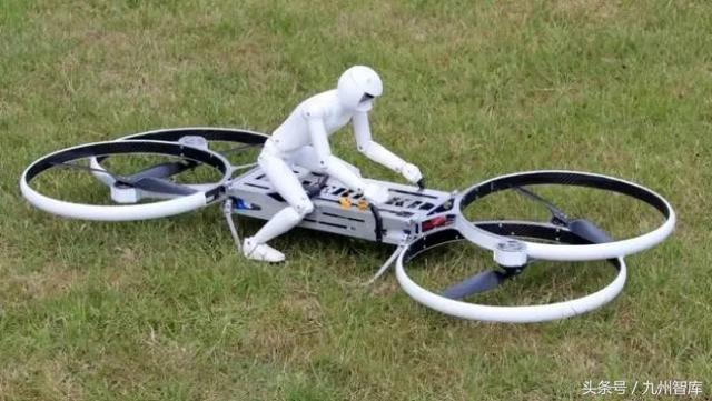 这东西其实用不着过多解释,光看外观就能明白个大致——这是无人机和摩托的结合,是一个单座、电动四旋翼飞行器。