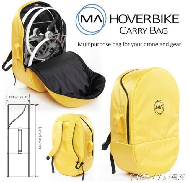 Malloy 飞行摩托可以负载1.5kg,可以预设飞行线路,还可以自动起飞和降落。当然,它最大的优势就是可折叠,折叠后的长度是0.59米,可以塞进自己的大背包。