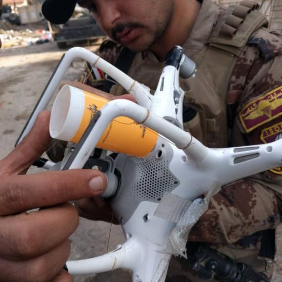 其实民用无人机被改装成武器,已经不是什么新鲜事,而且还在中东的局部战争中屡次大显身手。从最开始简单的被ISIS将民用无人机改装成自爆武器,到后面更进一步,升级为可以携带手榴弹大小爆炸物进行投掷的“轰炸机”。