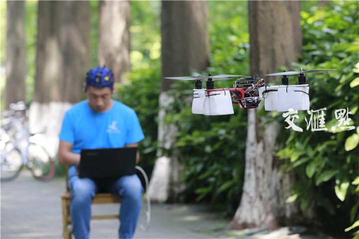 史亚超告诉记者,这样的炫酷操作,目前并不是人人能够实现,因为脑电波比较微弱,易受周边环境干扰,只有高专注度的操作者,才能实现有效的控制。换而言之,一架小小无人机的飞行情况,就能测出一个人的专注力。史亚超所在的跨学科研究生团队现在解决的征是抗干扰的难题,“现在我们主要是希望给失去手臂的残疾人带来福音。未来,你或许只要戴一个手表一样的大脑控制设备,就可以解锁一辆汽车,打开家里的灯,可以与周边的事物进行互动。。”