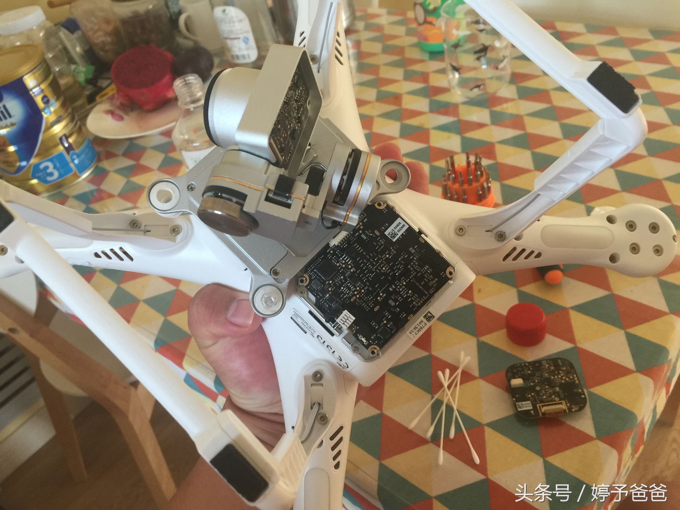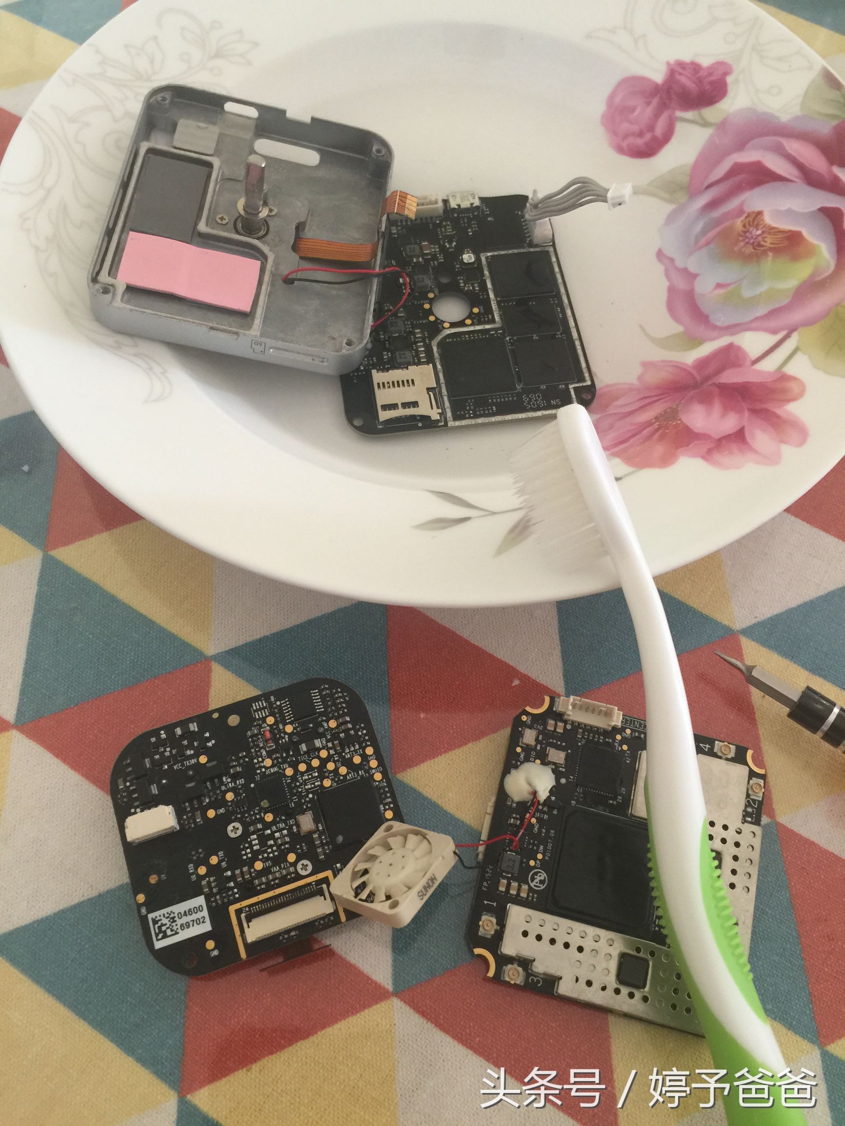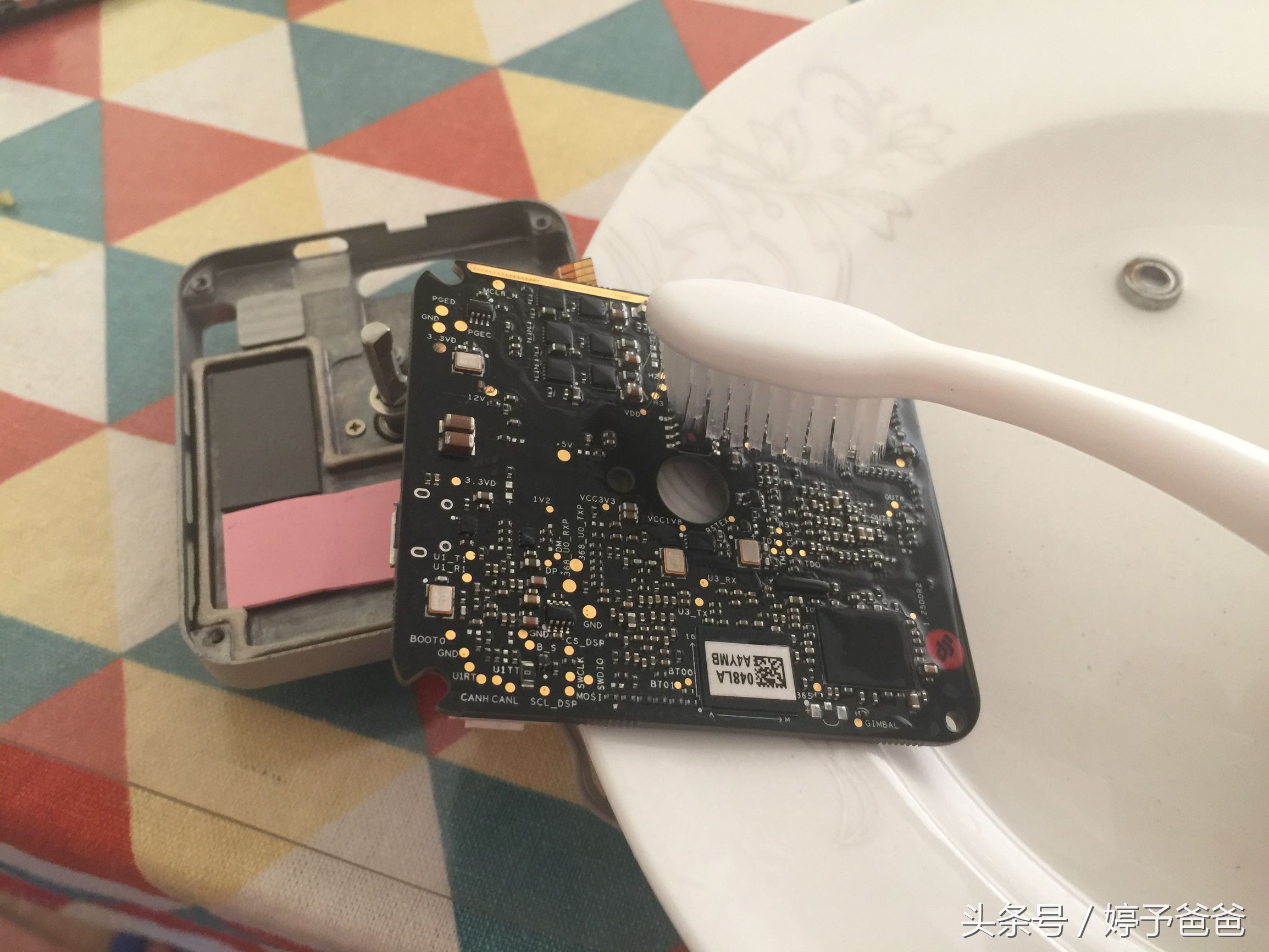 泡完晾干,还没有完, 拆机,用百分之95的酒精清洗主板,要仔细清洗,无人机的主板有好几块,这样做,最大程度减少损失。