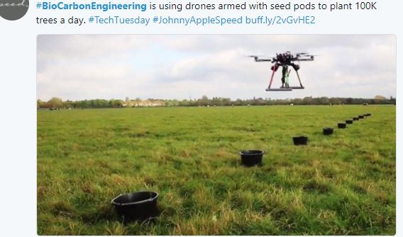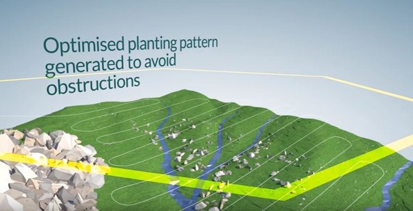 报导提到,透过无人机种树的步骤之一,得先飞行在超过地面300英尺高的空中,收集相关地形与土壤资料,经过运算后就能取得播种的绝佳地点;其次,无人机根据运算结果将「种子荚」(seed pod)射出至目标土壤中,其误差仅几公分的范围。