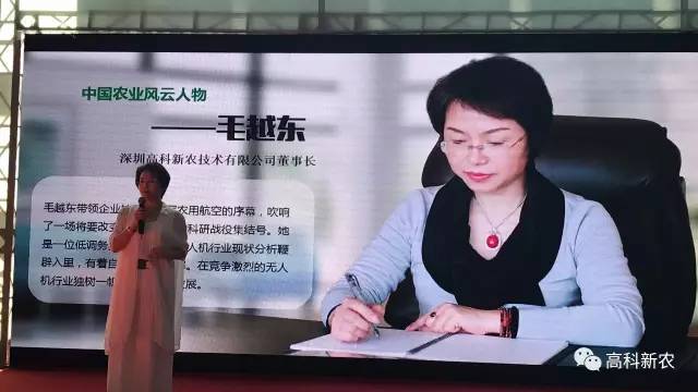 引言:8月18日,2017 中国第三届国际现代绿色农业博览会在深圳会展中心如期召开。为更好地推进农业现代化战略,展现新农业时代的活力风貌,展会同期在深圳评选出“2017十大中国农业风云人物”。高科新农董事长毛越东荣誉当选,在植保无人机行业潜心六载的她,究竟是如何在激烈竞争的无人机行业披荆斩棘的呢?