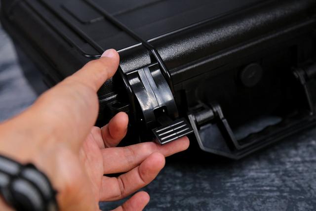 箱子的卡扣很牢固,开启和关闭都很流畅,掰开的一瞬间力度不小,啪嗒的一声。