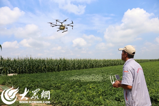 “一架植保无人机每天可喷洒农药面积300亩左右。每架无人机装20斤的氯氟氢菊酯、锌肥、苦参碱、灭幼脲四种农药,主要防治玉米螟、蚜虫等病虫害,十分钟可以作业十亩地。而人工喷洒要用一天的时间,自走式喷杆机械需要半个小时。”孙成波说。当日,三架植保无人机对八百亩玉米进行了免费施药作业演示。