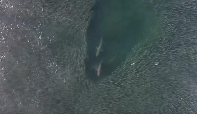 近日,一段无人机拍摄的视频吸引了许多人的关注。视频中几条鲨鱼冲入庞大的鱼群捕食,画面让人震惊。视频拍摄地点位于美国度假胜地纽约汉普顿斯的海岸。