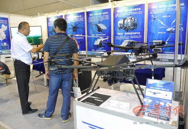 各种无人机也种类繁多,它们的能耐不容小觑:有的专门用来巡视管线,加一次油可飞一百多公里;有的可以挂弹攻击,堪称反恐利器;有的则用来喷洒农药,设置好以后便可以自己作业;有的则专门用来在特殊情况下形成电子干扰。