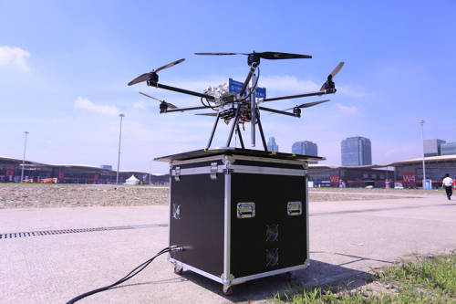 2017年6月28日,世界移动大会在上海新国际博览中心隆重拉开帷幕,中国移动展台上的一架无人机吸引了全球参观者的目光。这是系留式无人机应急通信高空基站系统首次在业内闻名的大型盛会上亮相,这也标志着“高空基站”这一全新的应急通信概念走入大众的视野。大工科技成为了与大疆媲美的无人机代名词。
