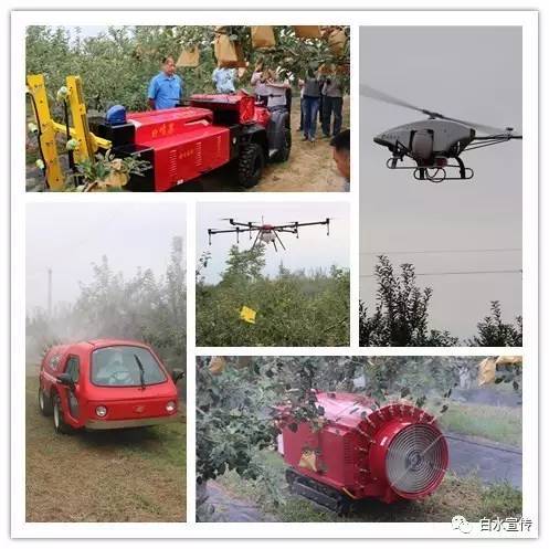 上午,参会人员在白水县鑫盛苹果专业合作社果园基地观摩了十余种果园植保机械现场演示。