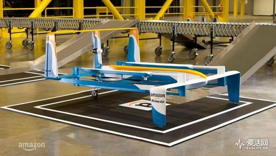 而亚马逊的想法则更为靠谱一些,他们通过无人机与运输船、货车搭配,构建一套无人机支撑的物流系统。运送快递货车司机不必停车,而是在指定地点派出无人机,将物件送达。