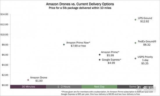 从亚马逊到沃尔玛,再到国内京东、淘宝,高昂不下的物流成本成为迫切需要解决的问题。根据德银统计,一个鞋盒大小的包裹,如果交给UPS或者联邦快递,成本可以高达6美元,即使是只有一英里,邮政快递是成本也需要2美元。
