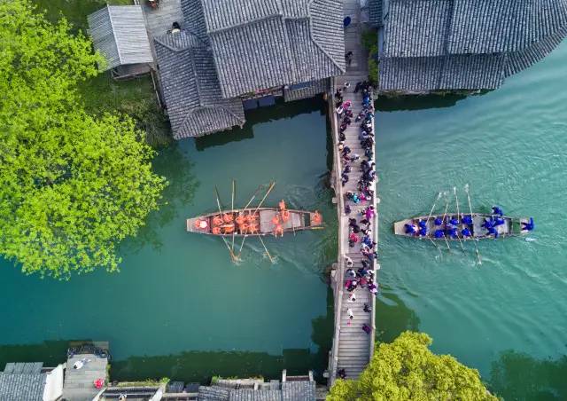 2017年3月29日,乌镇水乡百姓在乌镇西栅景区参加名为“踏白船”的传统水上竞技活动。