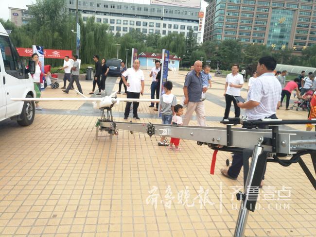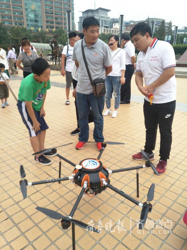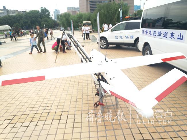 山东省国土测绘院展示的用于国土测绘地图制作的六轴旋翼无人机和弹射固定翼无人机吸引了不少市民的目光,尤其是弹射无人机,大家更是没见过。这个大家伙飞行速度快,完成测绘任务的时间短,但是精细度稍逊于六轴旋翼无人机。