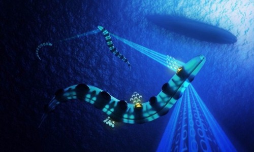 “鳗鱼”UUV 可借助蓝绿激光进行通信,形成一个水下通讯网络。