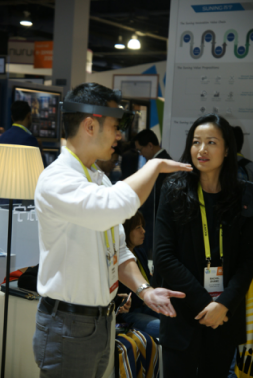 (图:2017CES展苏宁员工向参观者解说AR购物)