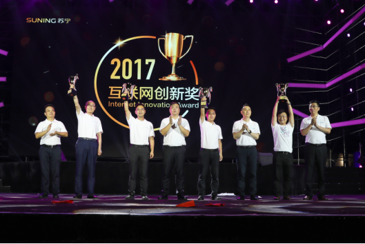 除了“刷脸消费”,苏宁也正计划通过AR、VR等智能交互方式,实现虚实结合的购物方式,用户不用前往门店也能通过电视或者手机实现虚拟逛店,让用户足不出户也能通过手机或电视实现虚拟逛店,同步了解店内的商品陈列、打折促销等信息。苏宁物流甚至还可以通过无人机将商品送上门。除了节目中出现的这些技术以外,苏宁在今年还推出了很多黑科技,其中,就包括实现了“订单到人”拣选方式的AGV机器人等,这一切都是为智慧零售打基础。当晚晚会的最大看点还在于千万“互联网创新奖”的颁发。该奖项今年覆盖范围再次拓宽,涵盖了零售云、会员一账通、数据开放合作、传播创新等“智慧零售”项目。据了解,“互联网创新奖”由张近东在2014年的苏宁之夏上亲自设置,以奖励那些敢于大胆创新,为集团做出重要贡献的小团队和个人,这几年已经陆续颁发了几千万的创新奖励,每年的力度还在不断加大。