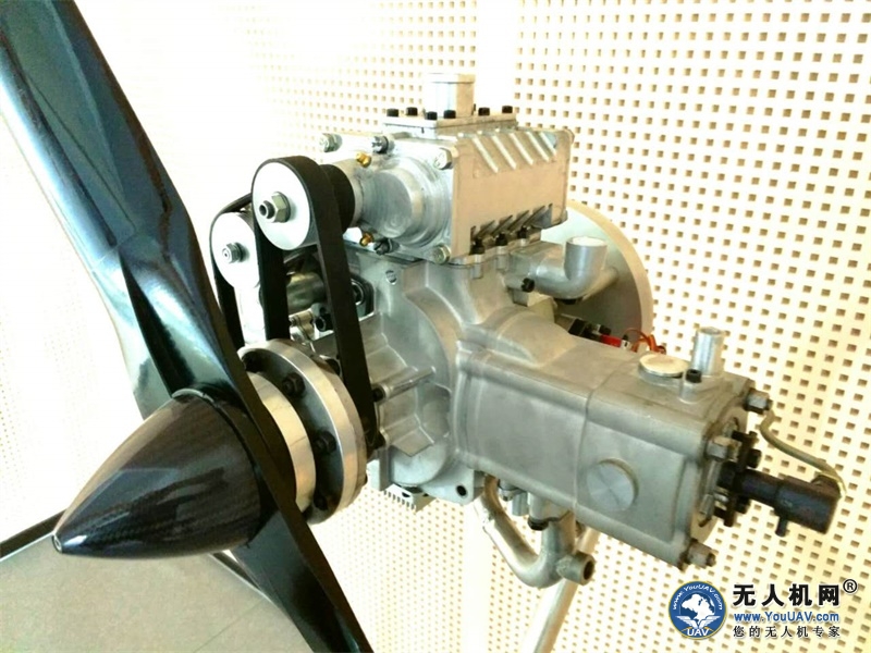 据了解,瑞深航空在重油活塞航空发动机的研制方面投入大量资金精力和北航合作研发了RS400型重油活塞航空发动机。目前公司正处于在第三批样机的试制当中,预计明年将实现装机首飞,该机若成功研发将在国防工业应用方面具有重要意义。据黄总表示瑞深航空在研制重油航空发动机时,其研发团队就已利用所掌握的油电混合动力的技术诀窍推出了H2型油电混合动力系统,该系统通过燃烧汽油发出电能供给无人机使用,从而即保留了汽油高能量密度的优势又保留了电动无人机操作简单灵活的特点,解决了电驱多旋翼无人机的航时痛点,给工业级无人机实际应用带来了广阔的前景。