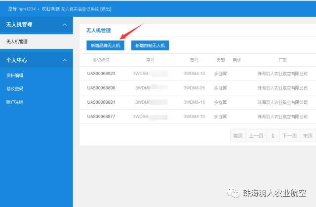 在新增品牌无人机界面,如果不小心填写错误又点击确认按钮的,也可以点击注销按键,重新填写。