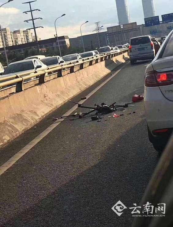一架无人机掉落在昆明二环桥面上