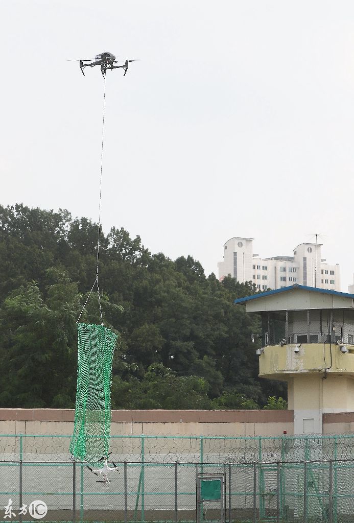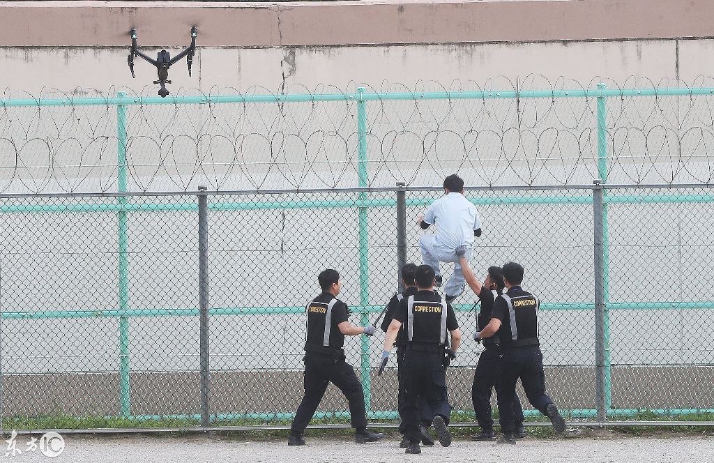 2017年8月31日,韩国汉城南部 警队在安阳的一个监狱练习用无人机抓捕逃犯。