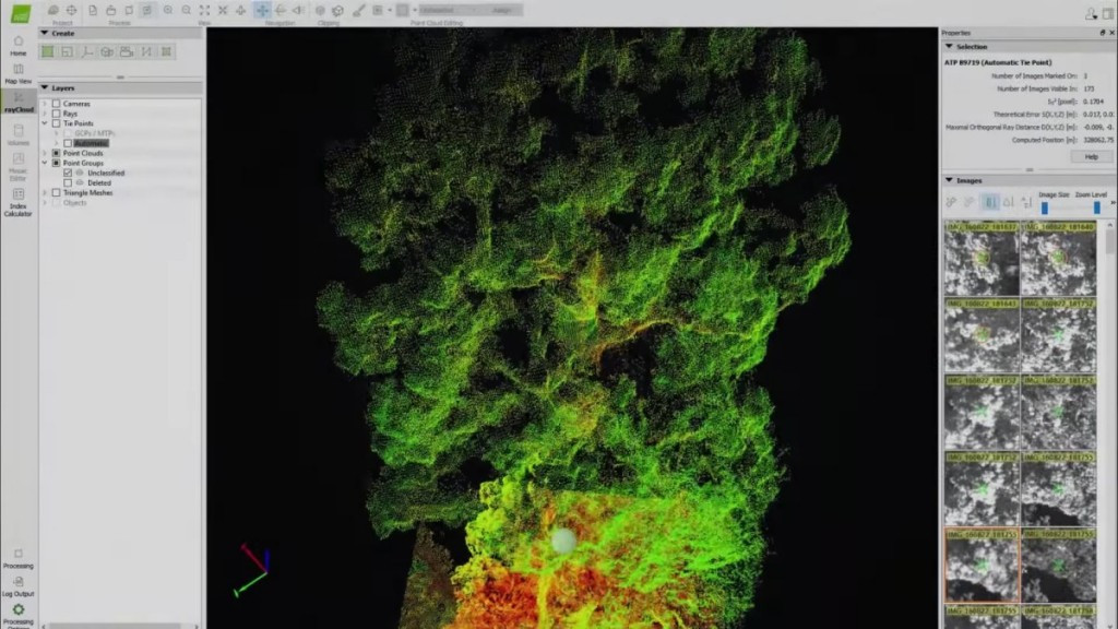 对于需要空中角度帮助科研的科研人员来说,无人机更是能派上大用场。以上是某片树林的多光谱图,能够帮助生态学家更清晰认识到树林生长方式。考古学家也能用无人机探测考古挖掘场,发现隐藏遗迹。