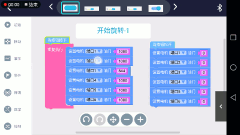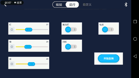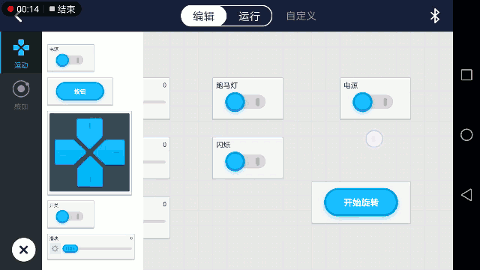 炫彩陀螺的模式其实是为了完全自定义编程做一个过度,可以看做是案例。进入其中你可以对控制面板界面和运动模式进行设计。