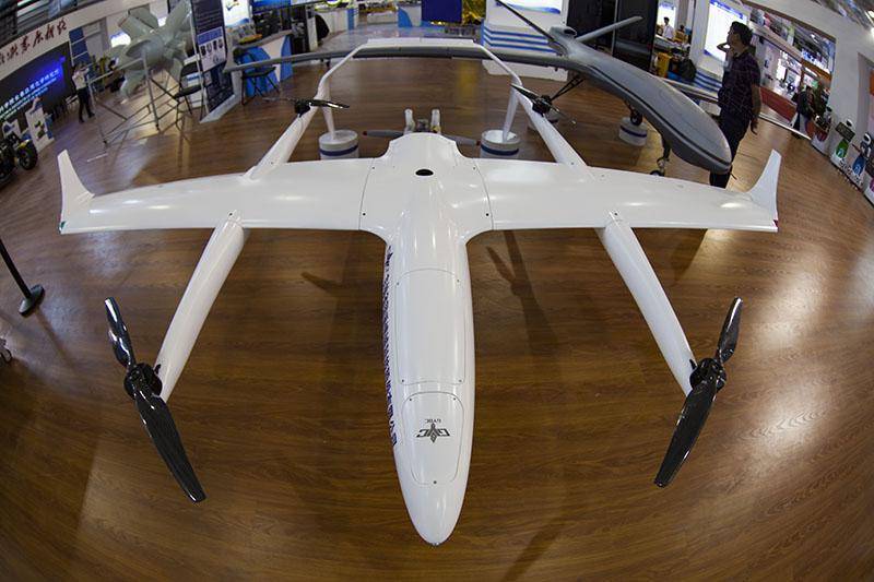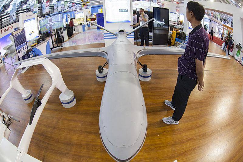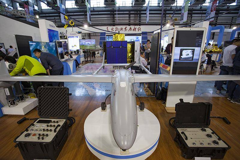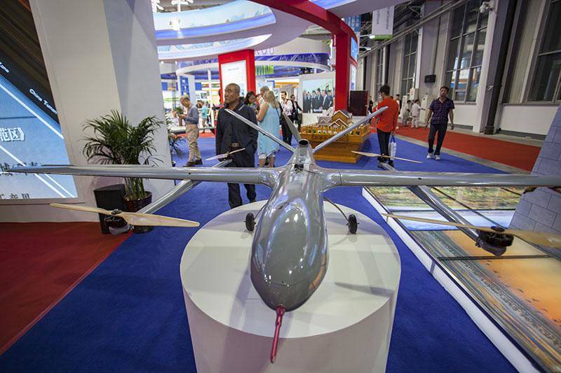 2017年9月1日,长春市会展中心展出的大型专用无人机。 第十一届东北亚博览会9号馆是智能制造主题馆,无人机、3D打印、“复兴号”动车组、机器人、智能家居、新能源电动汽车、无人配送机、智能配送车、智能搬运机器人等一大批国内外高端智能产品在这里集中亮相,46个企业的120余种智能产品与市民“零距离”见面,全面展现智能制造的最前沿技术,为与会观众带来了新时代技术的完美体验与无限惊喜。