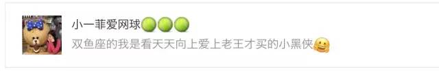 @小一菲爱网球 同学字里行间无不流露出对我们老大的思春之情....(画外音) “又到了一年交配的季节...."不对啊,都入冬了!双鱼果然是一年四季都在制造(fa)浪(qing)漫呢~小小菲可以多贿赂一下小编没事给你传个小私照,甚者还可以给你快递一根老大的头发。