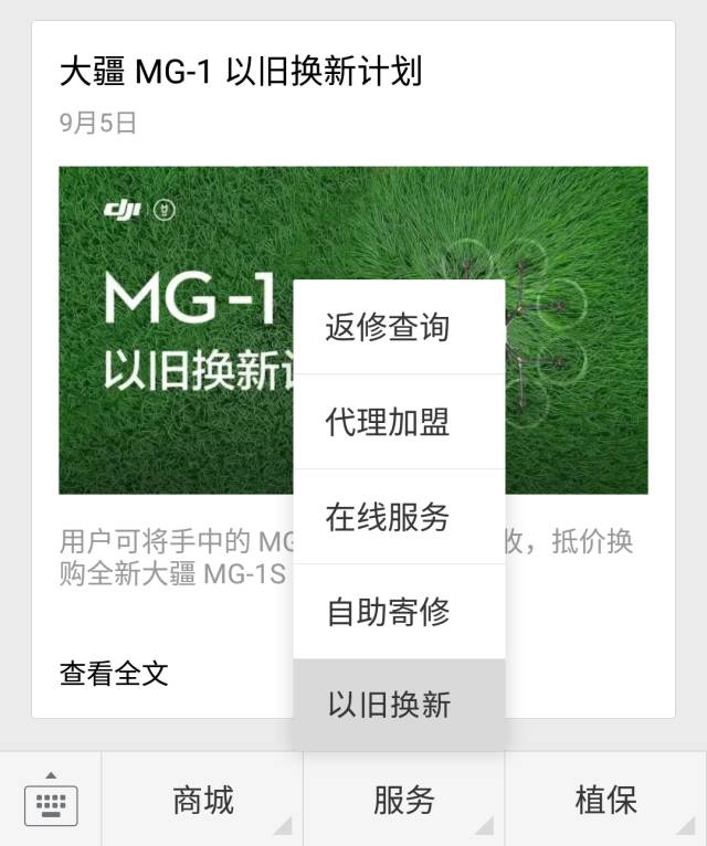 用户可登陆 DJI 官网 MG-1 页面或登陆djimg.litong.com登记参与以旧换新。参与活动时,可通过联系0755-82776491 咨询活动详情、获得流程指导。