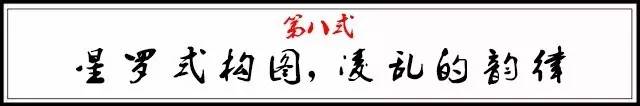 星罗式式构图指的是将重复元素随机排布在画面当中,因重复元素具有统一性的缘故,棋盘式构图可以获得一种特殊的协调性,画面具有不一般的韵律。而因为随机性的缘故,很容易引起观图者的好奇心。