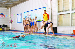 广州市170余万幼儿及中小学生以“安全教育第一课”开启了他们的新学期。专业人员演示了正确佩戴游泳圈的方法,并提醒同学们游泳要戴泡沫游泳圈,而不能用充气游泳圈。在他的鼓励下,同学们现场演练了如果落水如何自救、配合救援和施救的方法。教练特别强调的是,学生没有长大成人,还没有下水救人的能力,千万不能见义“妄”为,擅自下水救人;而要见义“智”为,科学施救。