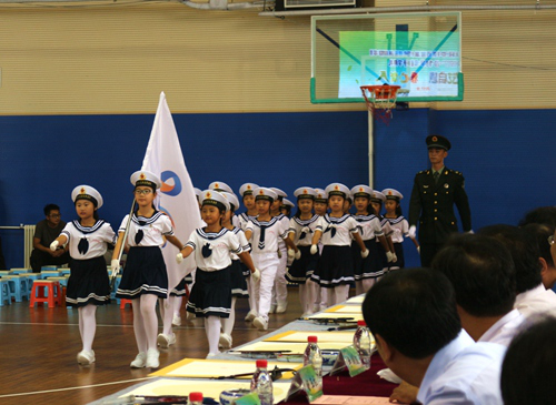 步履矫健、铿锵有力,小小仪仗队在教官的带领下,整齐划一地走过风雨操场,拉开了北京第八中学京西附属小学建校两周年暨开学典礼的序幕。京西附小的开学典礼主题为“ 六艺启慧 雅心育人”,学生以“说、演、弹、唱”等多种形式,将琴棋书画诗礼融入其中,让传统与现代相结合,古今中外相融合。