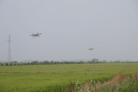 此次活动在武穴市万丈湖办事处万丈村赛区,万官公路南北两侧水稻田块共3000亩面积的赛场,划分为三个区:一是施药赛区,面积为2000亩,主要考察各品牌植保无人机作业效率和防治效果;二是喷水对照赛区,主要考察各品牌植保无人机续航能力以及作为喷药对照区;三是负重和抗摔赛区,面积100亩。
