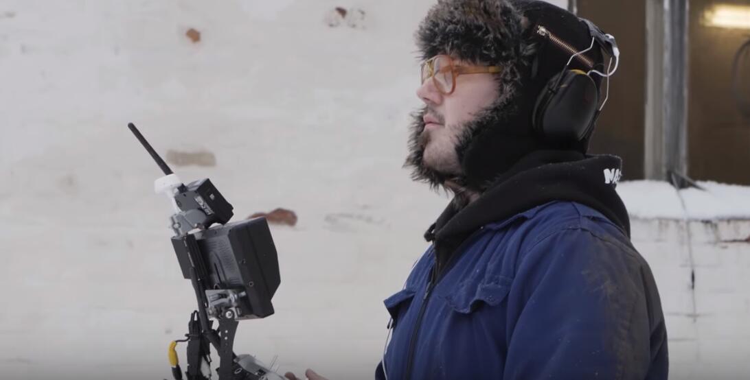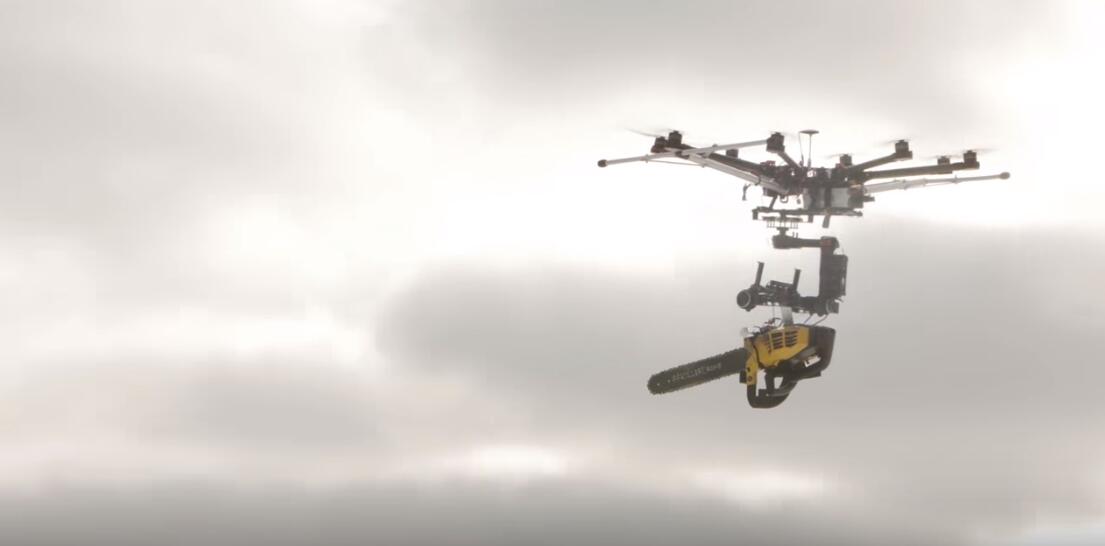 他们两人一个负责操控飞行的无人机,另个人则只需要专心看好电锯触碰到的位置和做出适当的摆动。