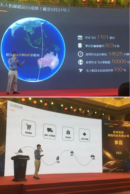 作为无人机物流领域的初创企业代表,迅蚁也受邀参与了此次峰会的展出,同时,CEO章磊也分享了迅蚁在快递“最后一公里”领域的探索与创新。