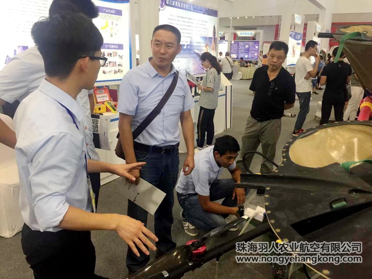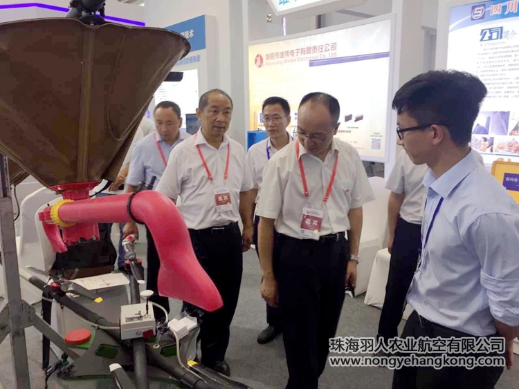 在D馆展区,珠海羽人农用无人机企业表现抢眼。在巡馆期间,四川省绵阳市游仙区政协姜主席、人大袁主任、区委副书记、常务副区长等一行领导来到珠海羽人展区参观了解谷上飞农用无人机3WDM4-10L与谷上飞多功能大载荷农用无人机3WDM8-20L。负责展区的周经理向一行领导热情接待并详细介绍,领导们了解我们产品后,对我们珠海羽人的产品是相当满意,并鼓励我们继续研发出更好的科技成果,为农业机械发展添一份力!