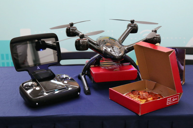 展览中的 XDynamics Evolve 无人机专为运送薄饼而设,负重最多 300 克,载到一个 7 吋薄饼连外盒,并可自选升级加装雷射感应模组,置于机底的 3D 列印货架。无人机预定在 2017 年 9 月 7 日由科学园三期的大广场出发,沿河道飞往俗称「金蛋」的高锟会议中心,全程长约 200 米,飞行需时约半分钟;然而,当时因大雨而未能飞足全程,只能示范短程飞行及起降。